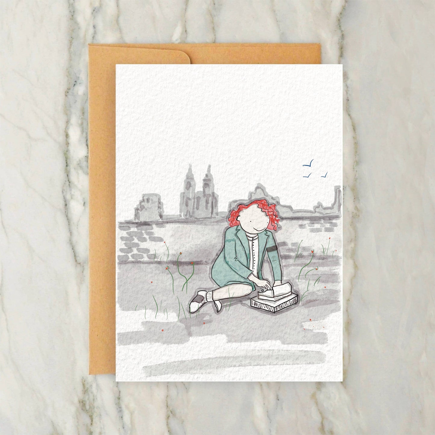 1940s Person Writing 4x5" Greeting Card WW2 Spy SOE Red Hair