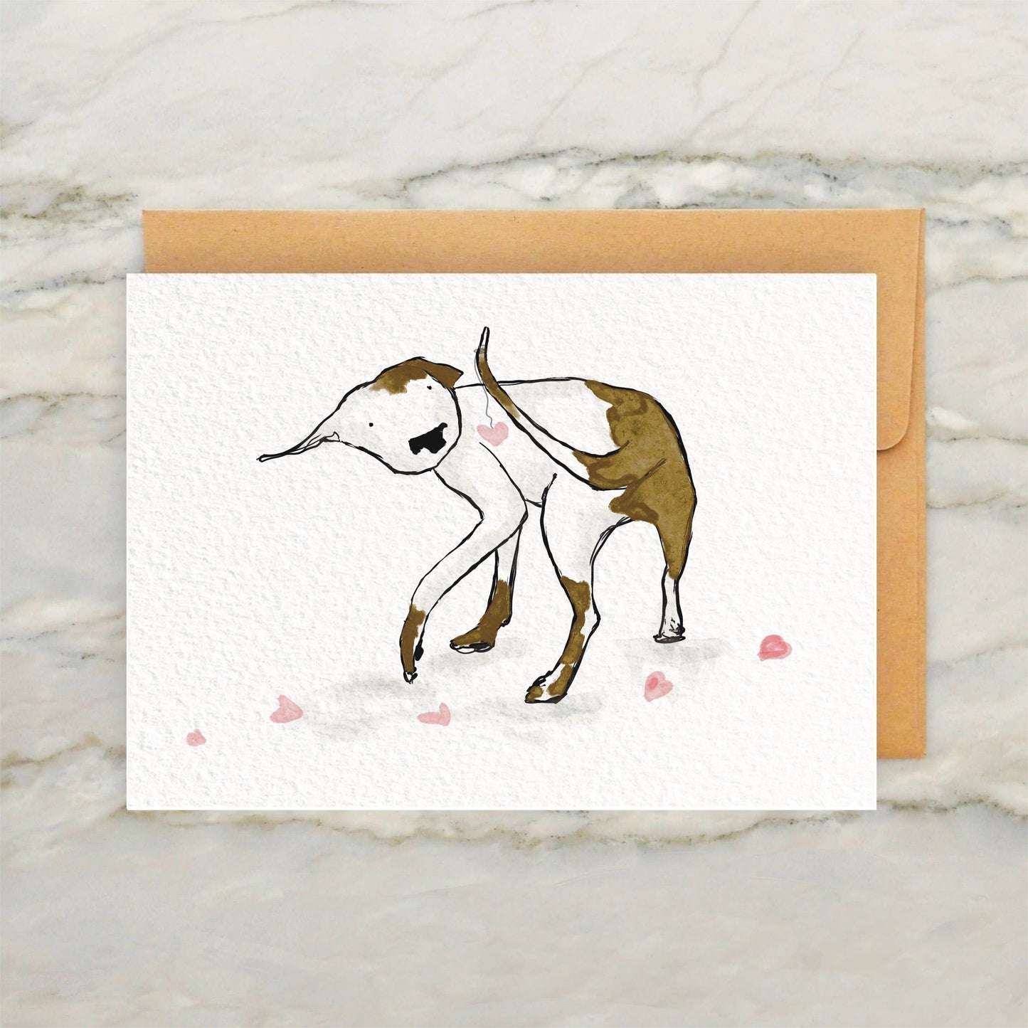 Dog Chasing It's Tail - Valentines Day 4x5" Greeting Card