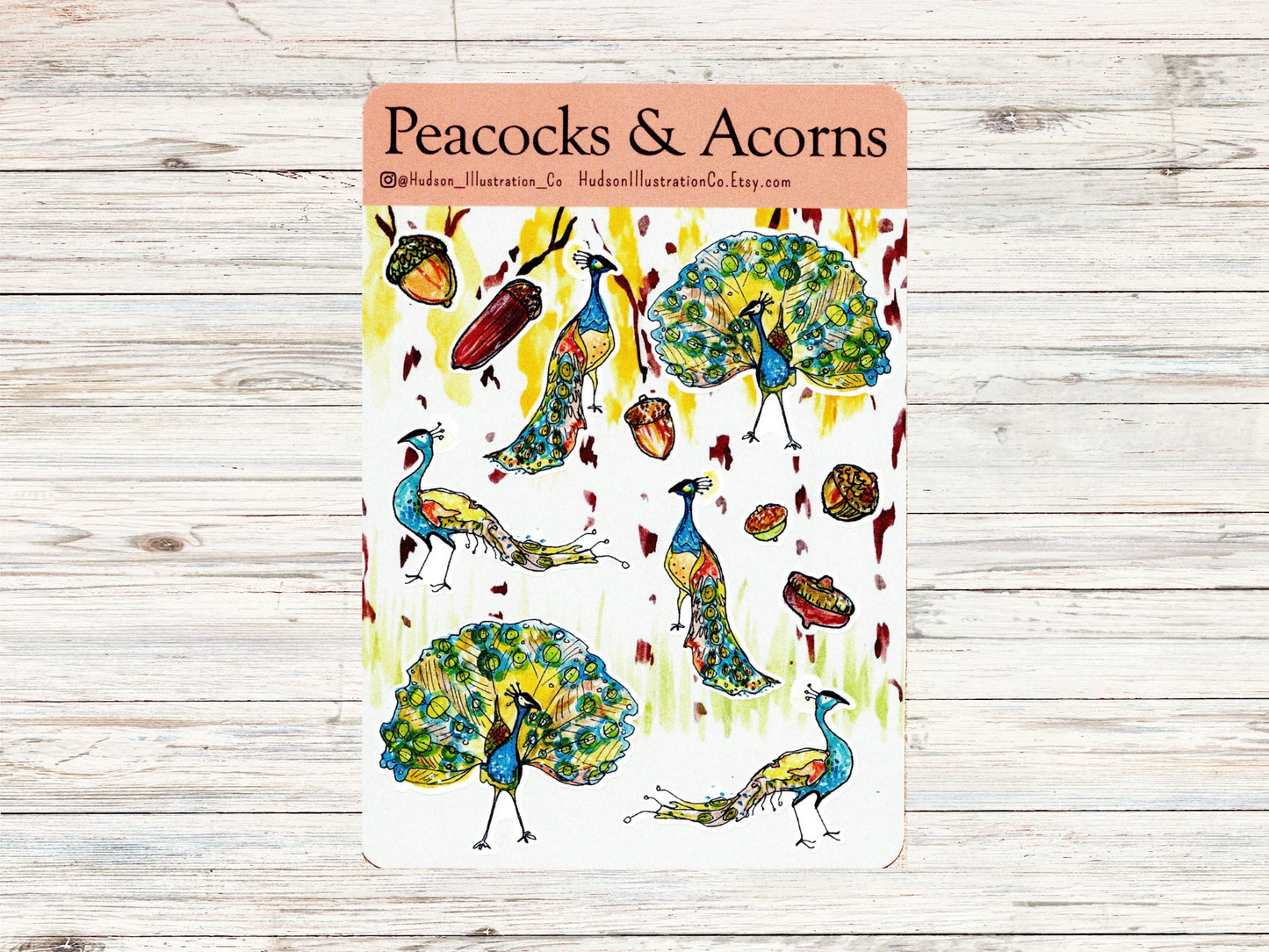 Peacocks & Acorns Sticker Sheet