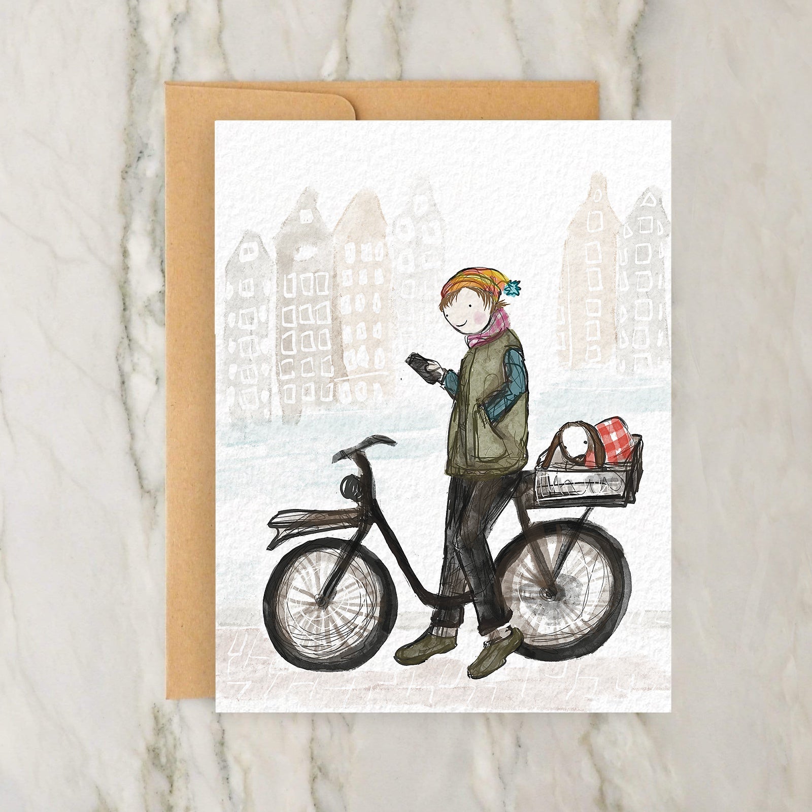 Person On a Bike in Amsterdam in Snow 4x5" Greeting Card