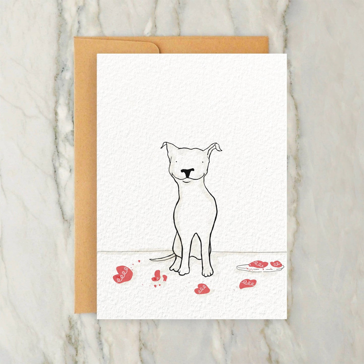 White Dog with Heart Valentines Day Cookies 4x5" Card