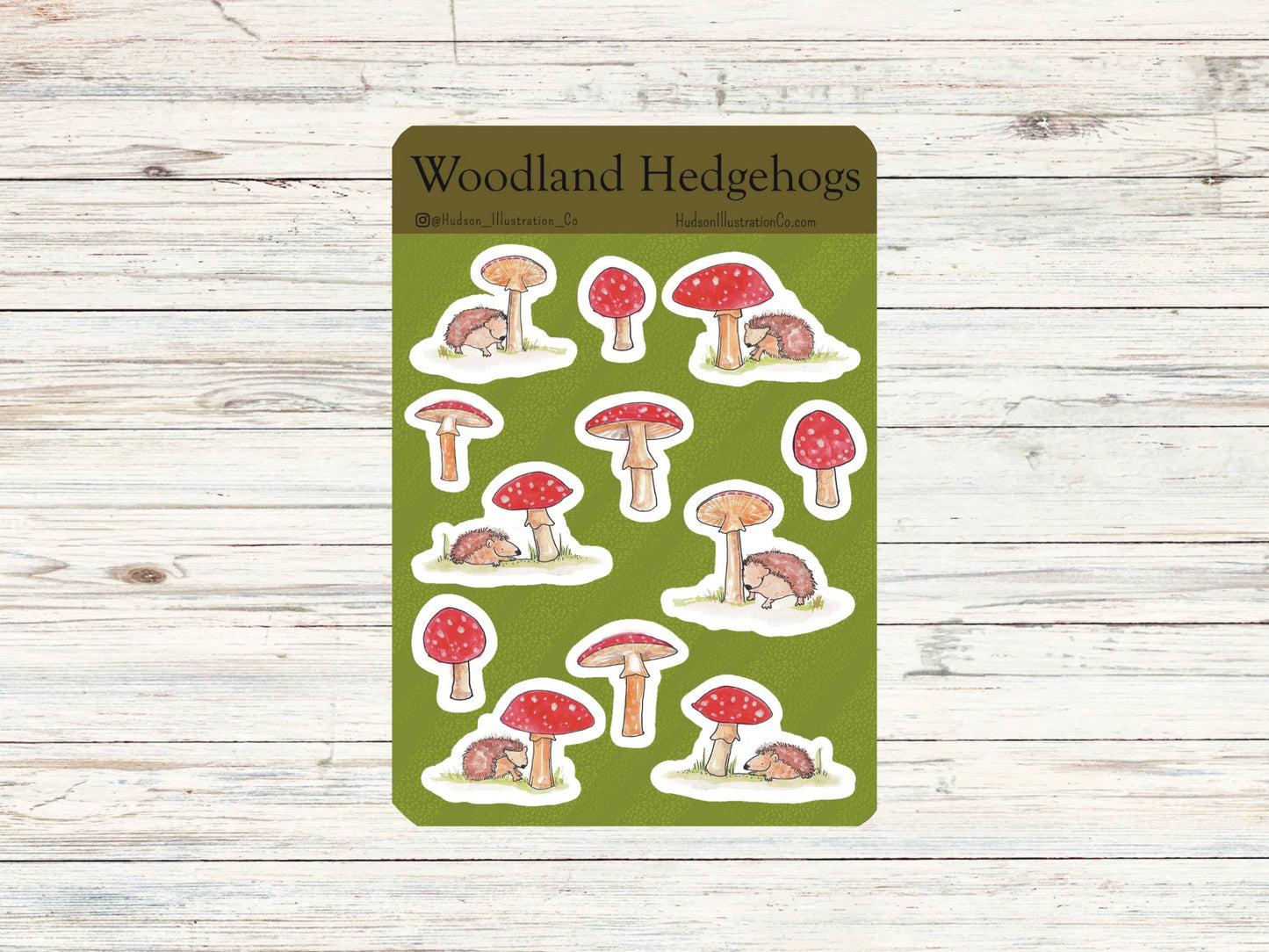 Woodland Hedgehogs and Mushrooms Sticker Sheet